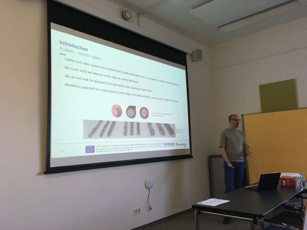 On a warm, sunny November day Davide Manfredo arrived in Halle to complete his PhD project at Martin Luther University (MLU). Five years before, in April 2020, he joined Fraunhofer ITWM in Kaiserslautern to study as THREAD's ESR11 simulation techniques for inelastic Cosserat rods and to investigate their effective constitutive properties (supervisors: Joachim Linn and Vanessa Dörlich). Today, he continues his successful work on cable simulation and related topics at THREAD's industrial partner fleXstructures GmbH.